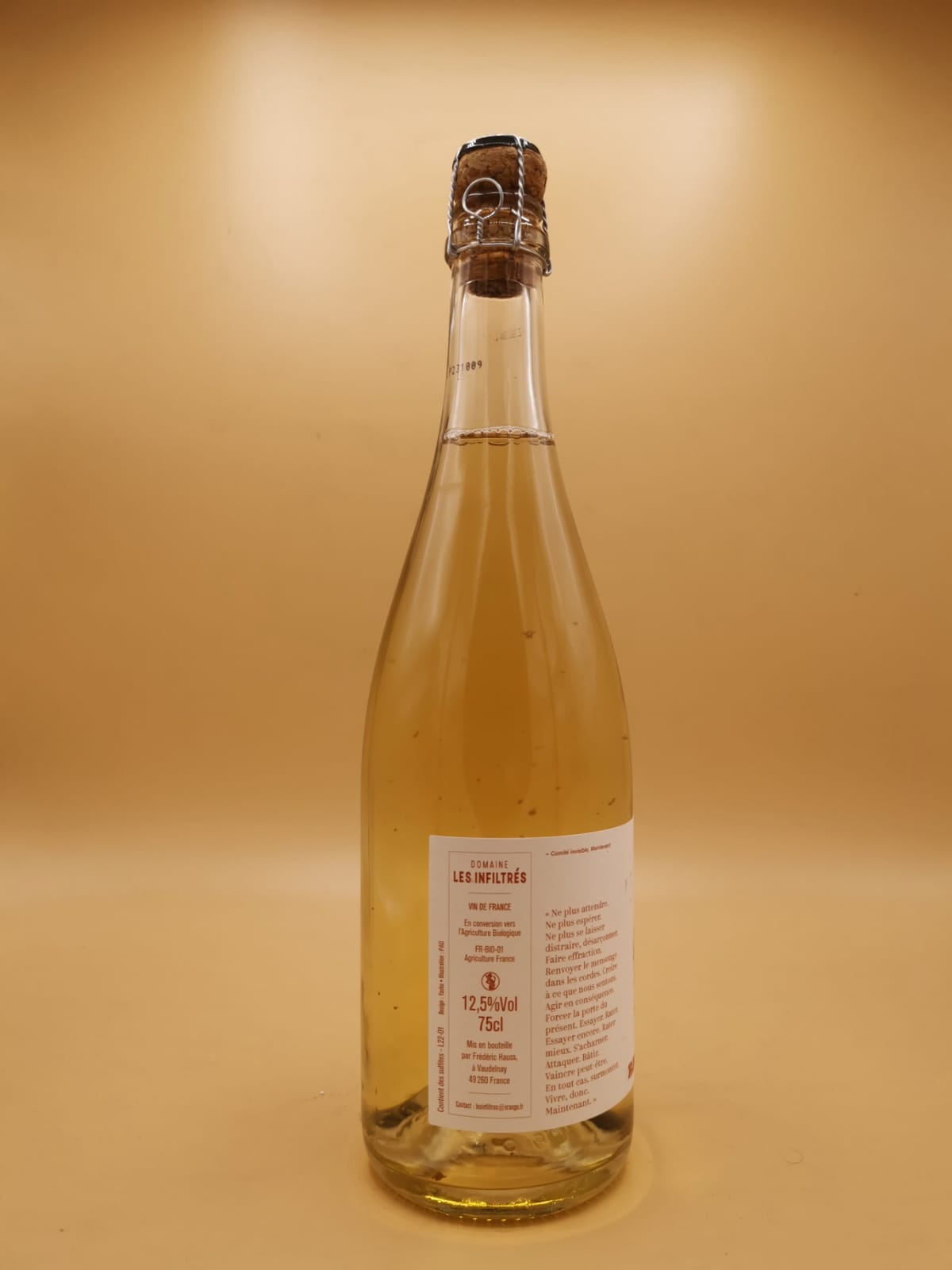 Affinamento: Affinamento in bottiglia sui lieviti per 5 mesi. Non subisce fermentazione malolattica, né filtrazione né chiarificazione. Solfiti aggiunti (15 mg/L) in sboccatura. Nessun dosaggio.